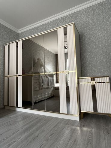 Yataq otağı dəsti – klassik-bej rəng palitrası, qızılı konturlu dekor. Dəst tərkibi: - 2 qapılı güzgülü böyük dolab (ölçü: 200×160×47 sm), içəridə asılqan bölməsi, rəflər və yığcam saxlama sahələr...
