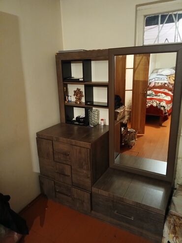 - Tualet masası/güzgülü komod – çoxsaylı çekmecələr və açıq rəf bölmələri ilə