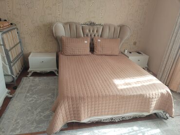 Yataq otağı mebel dəsti ÇOX TƏCILI !!! ENDRIM OLUNDU.... Tərkib: - Yumşaq başlıqlı iki nəfərlik çarpayı (alt hissədə yığıma/saxlama bölməsi qaldırma mexanizmi ilə) - 2 ədəd tumbə (qızılı dekor...