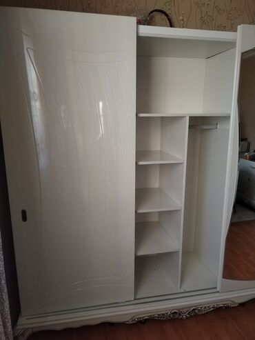 üç qapı dolablar 629 azn. Ağ rəngdə yataq otağı dəsti. Dəstə daxildir: güzgülü komod, çarpayı, çarpayı yanında tumba və güzgülü dolab. Dolabda güzgülər var. endirimli qiymətlə üç gün.
