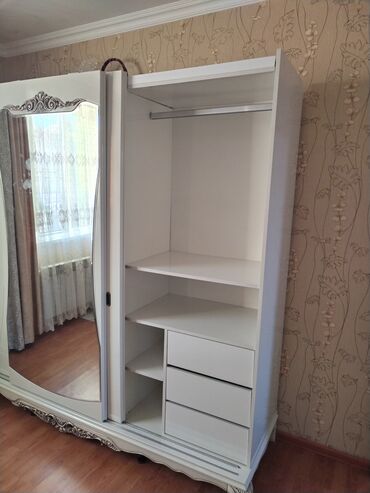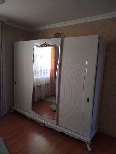 üç qapı dolablar 629 azn. Ağ rəngdə yataq otağı dəsti. Dəstə daxildir: güzgülü komod, çarpayı, çarpayı yanında tumba və güzgülü dolab. Dolabda güzgülər var. endirimli qiymətlə üç gün.