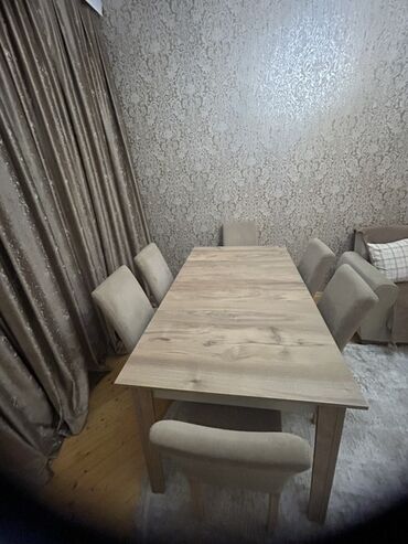8 nəfərlik masa dəsti, masa açilir. Saliton magazasindan alinib, təzə kimidir, heç bir yerinde çiziq, qiriq yoxdur. Səliqəli işlənib