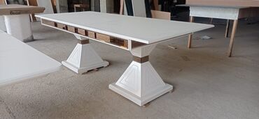 - Masa: Dikdörtgen forma, geniş üst səth. Kənarlarda dekorativ mozaika/güzgü zolaqları. Stabil dekorativ ayaqlar – iki alternativ görünüş: