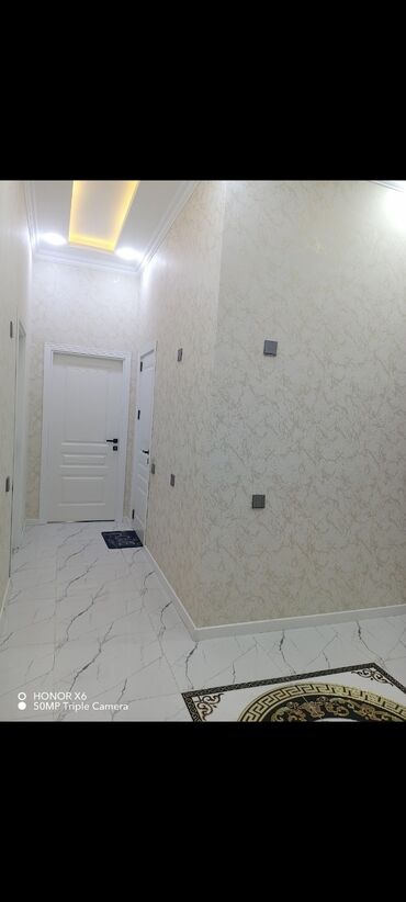 Mənzil işıqlı, funksional planlı və klassik üslubda tamamlanıb: parlaq keramika döşəmələr, ağ dekor elementləri və isti-bej rəng palitrası ilə harmonik interyer.