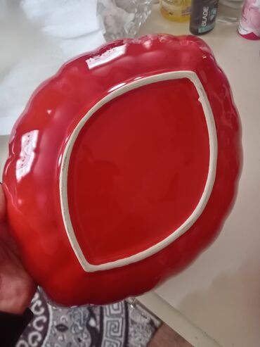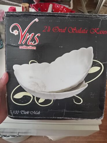 Yenidir ikili qab şüşe materialdan qirmizi ag xalli .Türkiye malidir .25 manata alinib 15 manata satilir .karopkasinda