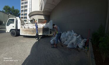 - Fotoşəkillərdə xidmətin nümunələri: qum, torba-tullantı və kərpic daşınması