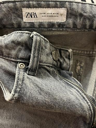 Zara qadın cins şalvarı - Rəng: tünd boz/black washed - Ölçü: 38 (etiketdə göstərilib) - Model: yüksək bel, düz kəsim - Material: klassik denim, azacıq elastik - Detallar: fermuarlı və dü...