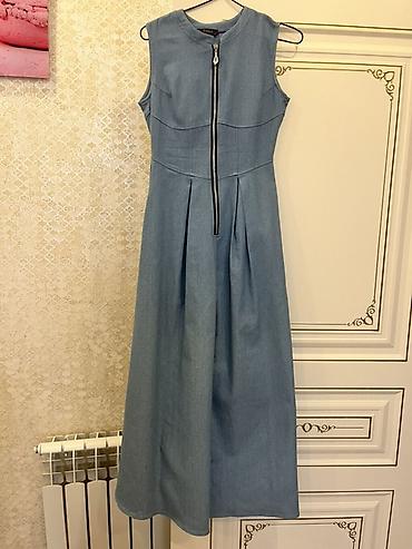 Zərif denim maxi don - Rəng: açıq mavi (jeans). - Model: qolsuz