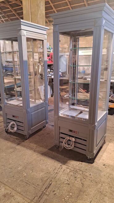 Paslanmayan metaldan hazırlanmış vitrin soyuducu. İçərisində bir neçə