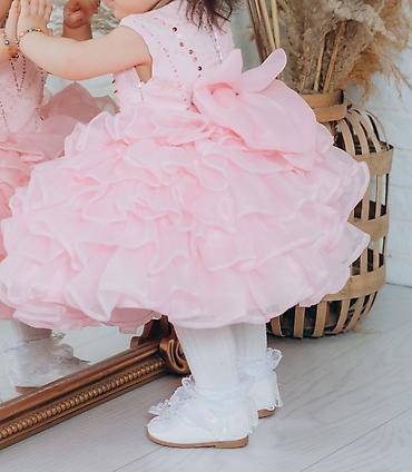Məhsul: Qız uşağı üçün bayram/əşyalı paltar - Rəng: Açıq çəhrayı - Stil: Tüllü, çoxqatlı ətək; yuxarı hissədə incə tük/puş detalı; romantik və bayram ab-havalı dizayn - Parça: Yumşaq tül və atlas ...