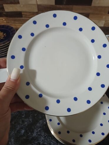 Boşqablar, 18 ədədli dəst, rəng - Ağ, Farfor, SSRİ