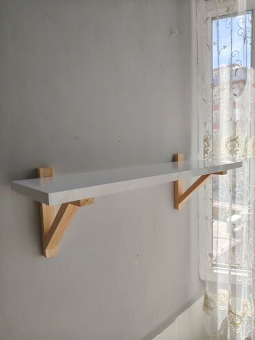 Divar rəfi – klassik taxta görünüşlü Mümkün olsa yazin zeng etmeyin!! - Material: ağac teksturalı laminat/MDF - Rəng: isti qəhvəyi (çəhrayı-qonur ton) - Ölçü (təxmini): 80–90 sm uzunluq, 20–25 sm...