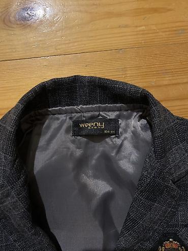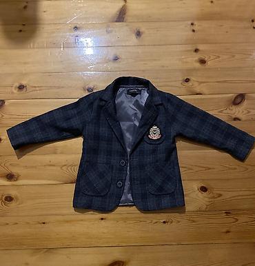 3-4yaş Uşaq üçün klassik pencək - Model: iki düyməli, klassik döşlüklü (notched lapel) - Parça: xırda zolaqlı/şevron naxışlı toxuma, astarlı - Ciblər: iki ədəd qapaqlı yan cib, bir ədəd sinə cibi -...