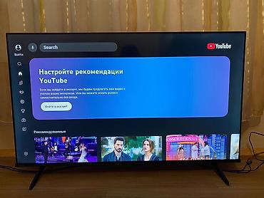 - Smart platforma: YouTube tətbiqi quraşdırılıb, hesaba giriş və fərdi tövsiyələr pəncərəsi görünür