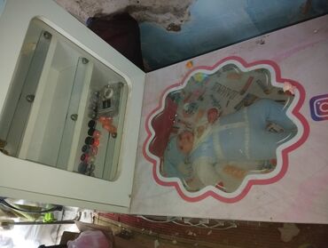 Ağ rəngdə kosmetik masa-güzgü dəsti - Ölçü: 160 x 100 x 40 sm - Qiymət: 240 ₼ - Şəhər daxili çatdırılma: pulsuz (şəkildə göstərildiyi kimi) Xüsusiyyətlər: - Böyük dairəvi güzgü - Geniş iş səthi -...