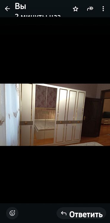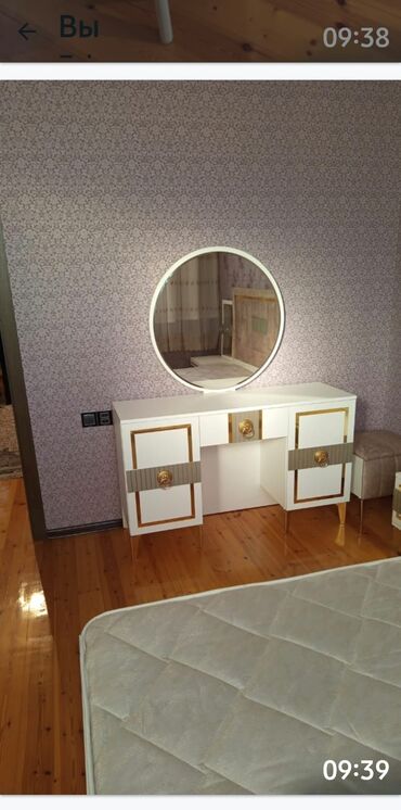 Yataq otağı dəsti – klassik krem rəngində, qızılı detallarla Komplektə daxildir: - Çarpayı: yumşaq başlıq, kvadrat tikişli dizayn, ortopedik əsas üçün uyğun karkas. - İki ədəd tumbə: qızılı haşiyə...