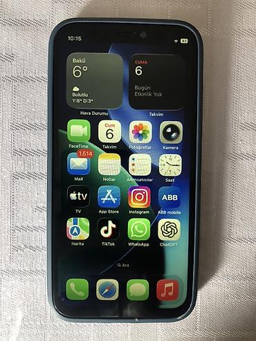Apple iPhone 12 mini – 64 GB, mavi rəng - Model: iPhone 12 mini (model kodu MGE13RM/A) - Yaddaş: 64 GB (mövcud boş: təxminən 27.95 GB) - Rəng: Mavi - iOS versiyası: 26.2 - Face ID dəstəyi iwleyir ...