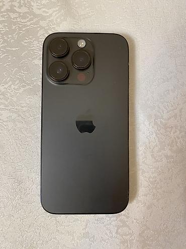 Apple iPhone (Pro seriyası) - Rəng: Qara - Korpus: mat şüşə arxa panel, polad çərçivə - Ekran: Dynamic Island kəsiyi olan tam ekran OLED - Kamera sistemi: arxada 3 linza + LED işıq; geniş, ultra‑g...