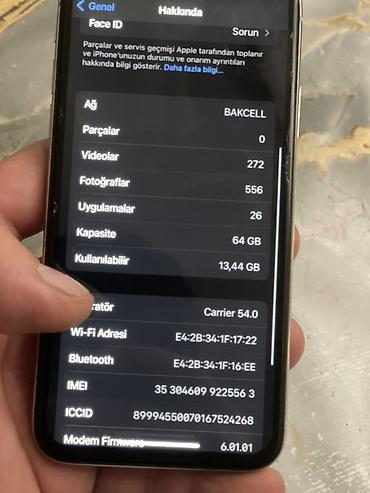 Ayfon X Normal Vəzyətdə Pil Dəyişib Ekran Dəyişib Face Aidi İşləmir 64 Gb Bartere Üsdünlük Verilir