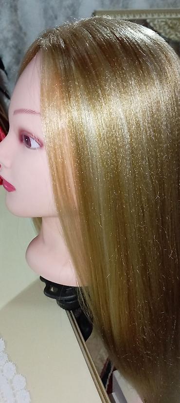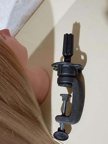 Təlim üçün almışdım, artıq ehtiyac olmadığı üçün satıram. Çox az istifadə olunub, təmiz və səliqəlidir. Saçları sünidir, amma kifayət qədər sıx və uzundur. Üzərində şəkildə gördüyünüz masaüstü bərkidici stendi (tutacağı) də verilir. Həm yeni başlayan bərbərlər, həm də toxuma/düzüm (hairstyling) öyrənənlər üçün idealdır.