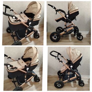 - 2-si 1-də konstruksiya: beşik tipli lyulka və gəzinti bloku. Hər iki blok irəli-geri (üz-üzə və ya hərəkət istiqamətinə) çevrilə bilir.