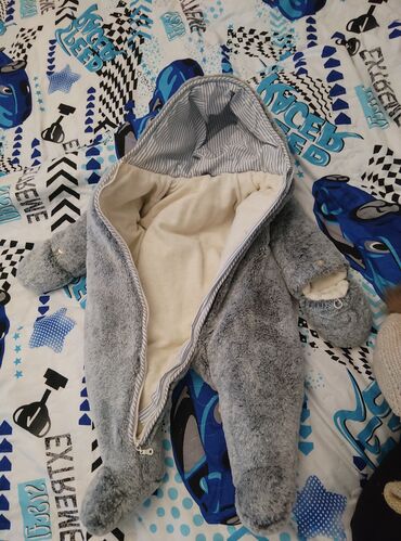 Uşaq üçün qış kombinezonu - Rəng: boz - Ölçü: 3–6 ay (uzunluq 62 sm; etiketdə göstərilib) - Marka: Mothercare - Material və içlik: yumşaq, isti doldurmalı; başlıq və daxili hissə tüklü/plyuş astar...
