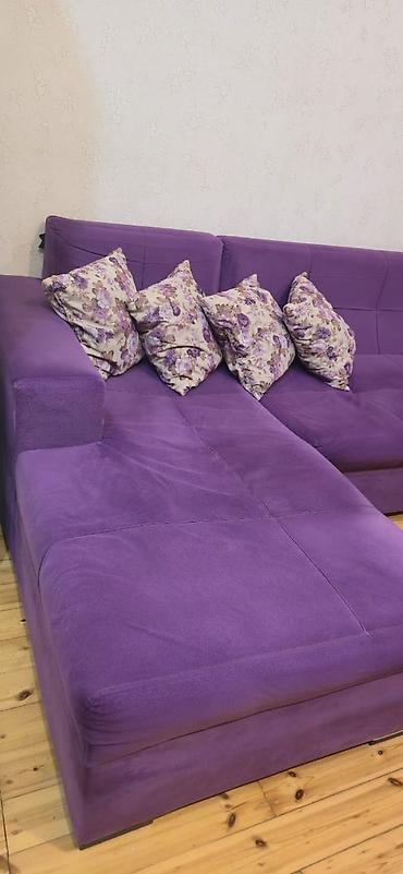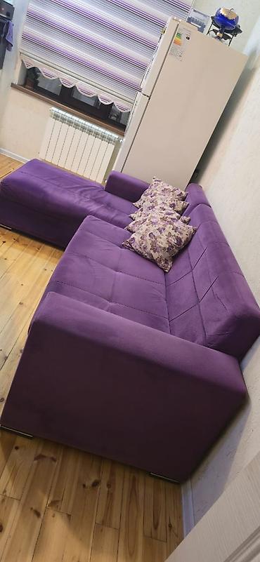Mebel: Bənövşəyi rəngdə künc mini divan Xüsusiyyətlər: - Ölçülər: 170 × 120 sm - Mexanizm: Açılan mexanizm (əlavə 30 ₼) - Rəng seçimi: Mümkündür - Çatdırılma: Mərkəz daxilində pulsuz Dizayn: - La...