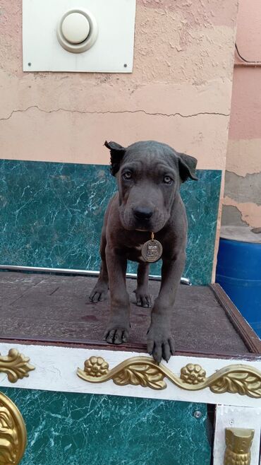 Cane Corso balaları , qurd dermanlari verildi , peyvend vururldu - Cins: Cane Corso (İtalyan mastifi) - Rənglər: boz (blue/şifer) və qara - Say: erkek 2 boz / dişi 1 boz 1 qara - Xarakter: ailəyə...
