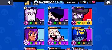 - Yüksək kuboklu Edgar, Mortis, Shelly (11 lvl), Dynamike, Stu və s.
