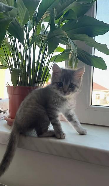 4 aylıq, dişi, çox şirin və sağlam bala pişik. British Shorthair ilə qarışıqdır. Ev şəraitində böyüyüb, çox oynaq və mehribandır.Guvenilir bir şekilde sahiplendirilmek isteyirik.