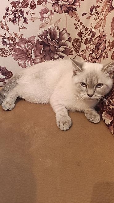 Britaniya qısatüylü (British Shorthair) tipli, gümüş-krem rəng çalarlarında gözəl pişik. - Yumru baş quruluşu, qısa və sıx tüklü yun, iri ifadəli yaşıl gözlər - Kompakt, möhkəm bədən quruluşu və q...
