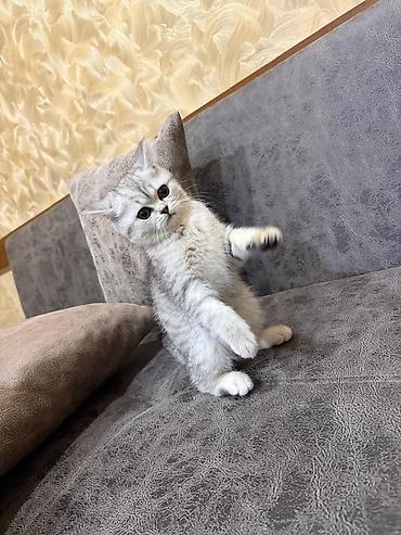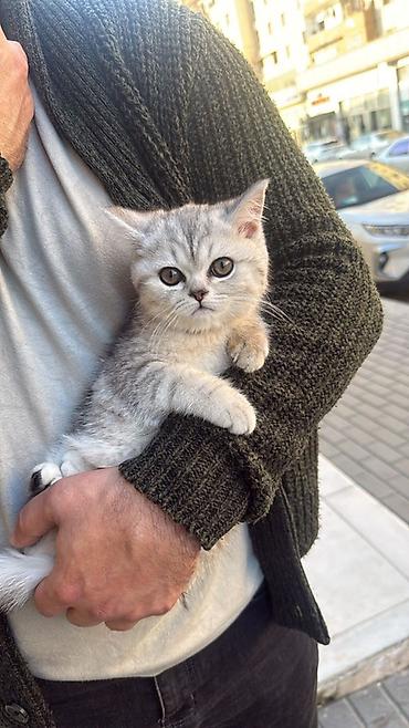 British qızıl rəngli pişik balası - Cins: British Shorthair (golden shaded/shell rəng) - Yaş: təxminən 1–2 ay - Xüsusiyyətlər: iri mavi-boz gözlər, yumşaq sıx tüklü kürk, yuvarlaq baş və kiçik qul...