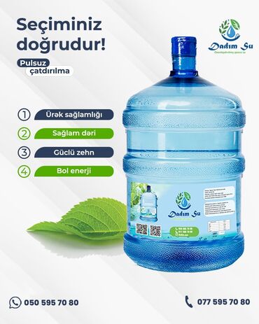 Dadım Su markasına aid su daşıma xidməti, müştərilərə təmiz və mineral tərkibli suyun qapıya çatdırılmasını təmin edir. Xidmət çərçivəsində, 19 litrlik qablaşdırmada su təklif olunur. Çatdırılma pu...