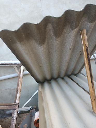 Dalğalı şifer vərəqləri - Material: sement əsaslı dalğalı şifer - Rəng: boz/bozumtul - Ölçü: iri format (standart dam örtüyü lövhələri; qalınlıq və dalğa profili fotolarda görünür) - Tətbiq sahəsi...