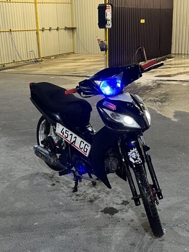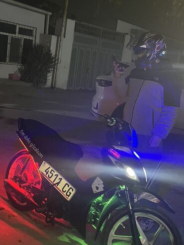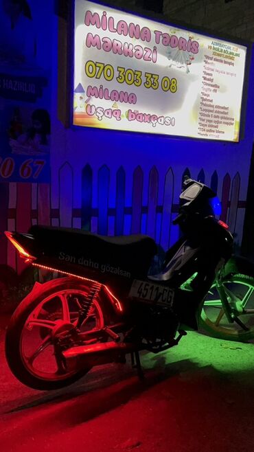 Moped/motosiklet – şəhərdaxili sürüş üçün yığılmış, dekorativ işıqlarla fərdiləşdirilmiş model.