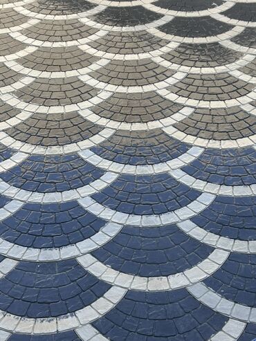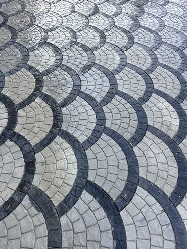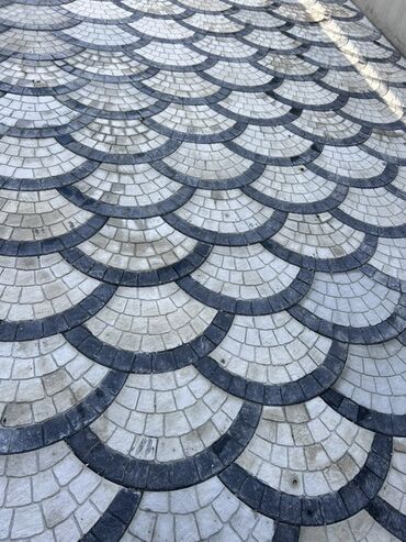 - Dekorativ səki-daşı (paver) örtüyü – yarımdairəvi “pulcuq”/dalğa naxışlı dizayn