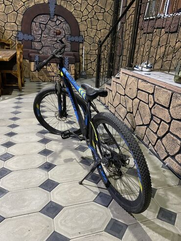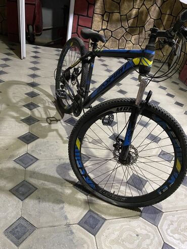 Başlıq: Salam velosiped satilir az surjlub hec bir problemi yoxdu Təsvir: - Şəhər və yüngül off-road üçün uyğun MTB tipli velosiped - Rəng: qara-mavi dizayn, KSTON loqolu çərçivə - Yüngül və möhkə...
