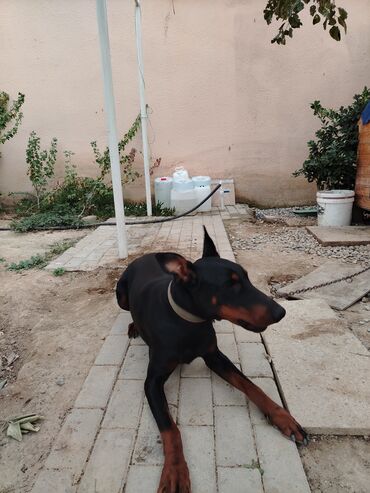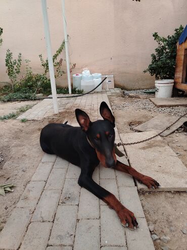 Satılır: Doberman • Cins: Doberman Pinscher • Rəng: Qara-qəhvəyi (tan işarələr) • Quylu qulaqlar, möhkəm bədən quruluşu • Aktiv, çevik və ayıq mühafizə instinkti • Həyətyanı sahə və mühafi...