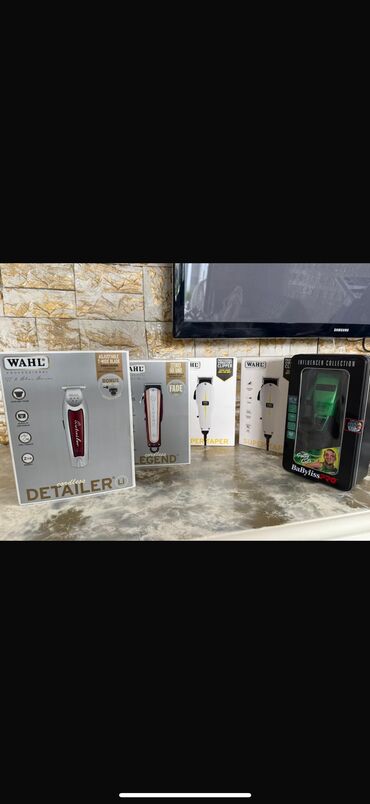 Şəkillərdə WAHL Legend, Super Taper, Pew Taper və BaBylissPRO kimi digər peşəkar saç kəsim cihazlarının qablaşdırmaları da görünür. Bu elan Cordless Detailer Li trimmerinə aiddir.