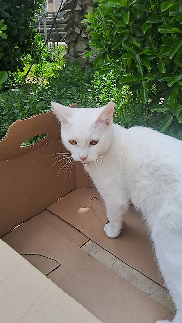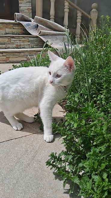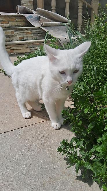 - Tamamilə ağ, qısa tüklü, zərif quruluşlu ev pişiyi