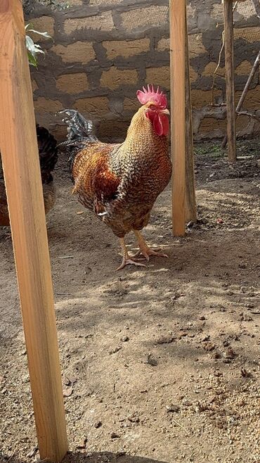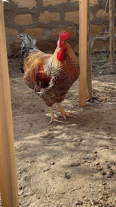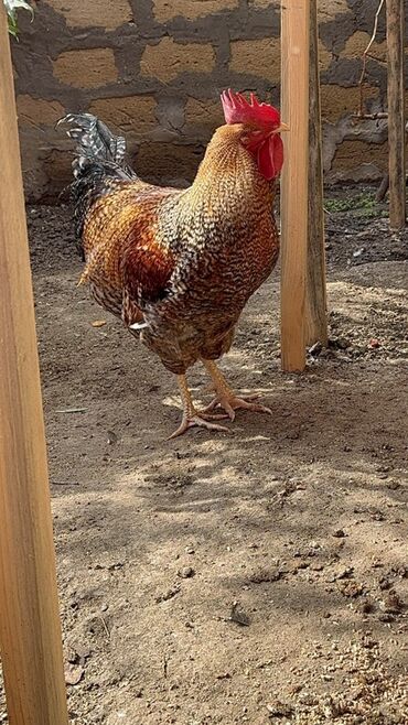 Xoruzdu 3 aylıq. Təsvir: - Həyət şəraitində saxlanılan, sərbəst gəzib-otlayan xoruz - Rəngi krem-ağ əsaslı, qırmızı-qəhvəyi ləkəli; quyruq lələkləri tünd-boz çalara malikdir - Qırmızı daraq və bal...