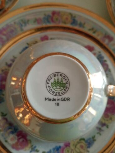 • Brend/işarə: Freiberg Porzellan, Made in GDR (Şərqi Almaniya) – markalama qabların altında göstərilib.