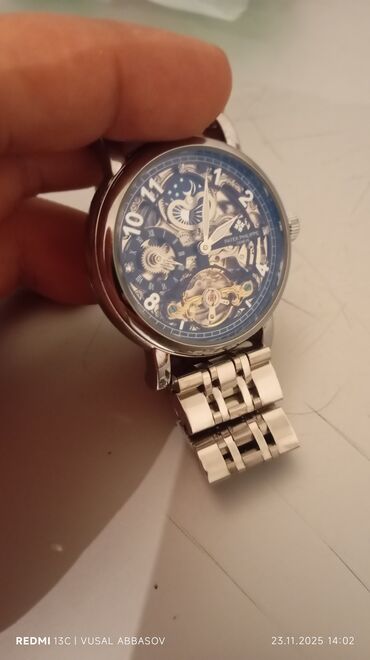 Qol saatı zərif metal qolbağı və açıq mexanizmli siferblatı ilə həm gündəlik, həm də klassik geyimə uyğun aksesuar kimi nəzərdə tutulub.