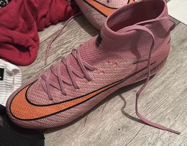 - Komplektdə görünən aksesuarlar: Nike futbol corabları və sürüşməyə qarşı tutacaqlı TapeDesign tipli corablar, çəhrayı qoruyucu/kisə