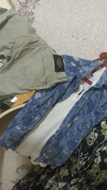 - Tünd mavi cins şalvar, 5 cibli kəsim, bel kəməri ilə.