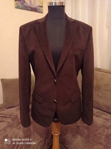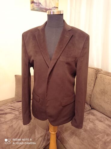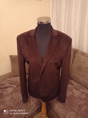 Kişi üçün klassik pencək - Rəng: tünd boz/qara tonlarda - Material: üst parça 100% pambıq (xırda zolaqlı/corduroy quruluş), astar 100% asetat - Ölçü: 50 (etiketdə göstərilib) - Dizayn: iki düyməli...
