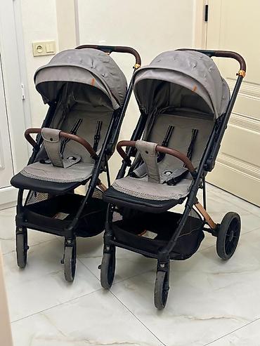 - Komplekt: 2 ədəd gəzinti tipli uşaq arabası və 3 ədəd birləşdirici bağlayıcı (arabaları yan‑yana qoşaraq “double” kimi istifadə etmək üçün)