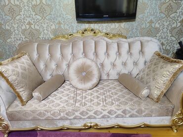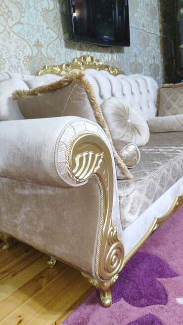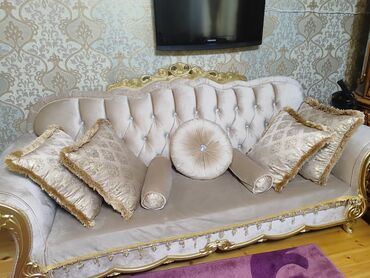 - Dizayn: Qızılı barokko elementləri, oyma taxta çərçivə və dekorativ ayaqlar. Arxa hissə kapitone (kristal-düymə) işləməli.