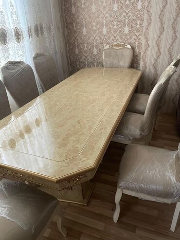 - Dəst: uzun düzbucaqlı yemək masası + 6 ədəd stul