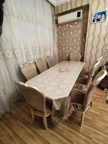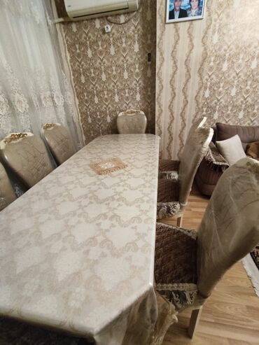 Masa yeni alınıb 2aydır 1600manata almışam ucuz satılır real alıcıya endirim olunacağ. Klassik üslubda yemək masası və 8 ədəd stul dəsti.